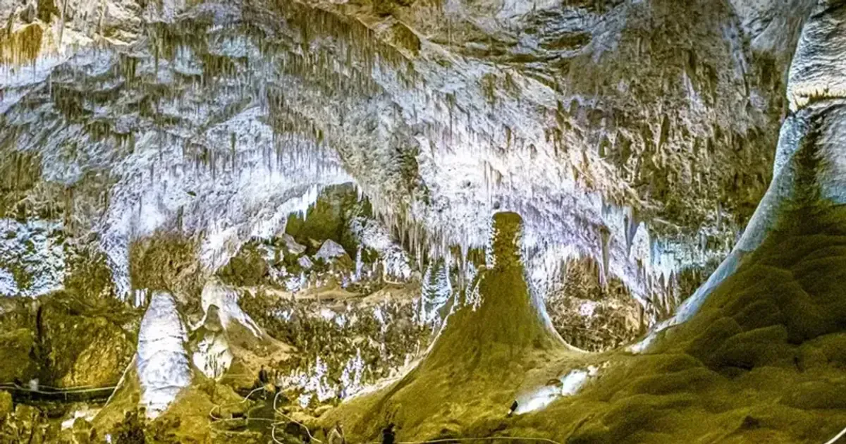 Під кам’янистими каньйонами пустелі Чіуауа в Нью-Мексико лежить система зі 119 печер національного парку «Карлсбадські печери». Вапнякові структури сформувалися тут мільйони років тому. Найвідомішою є печера Карлсбад, у якій розташована величезна Велика зала довжиною майже 1,2 км.