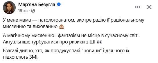 Нардепка Мар’яна Безугла похвалилася, що має «раціональне мислення» і не вірить у магію.