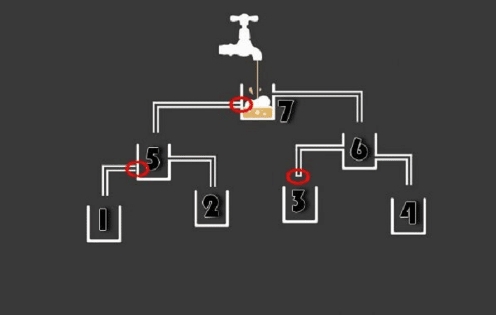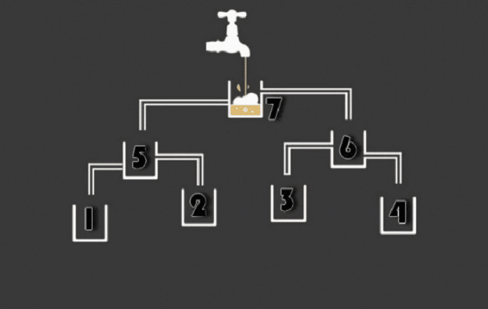 Щоб полегшити завдання, зверніть увагу на такі деталі. Наприклад, склянка №7 має трубки з обох боків, які ведуть до склянок №5 і №6. Це означає, що вона не може наповнитися першою.