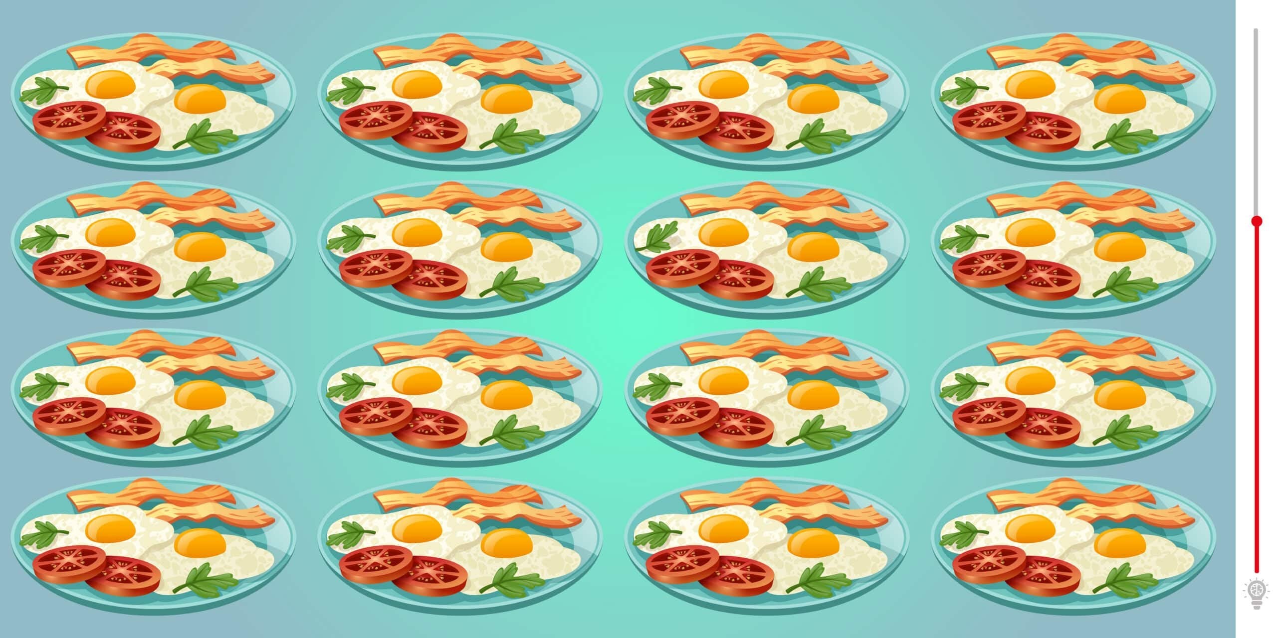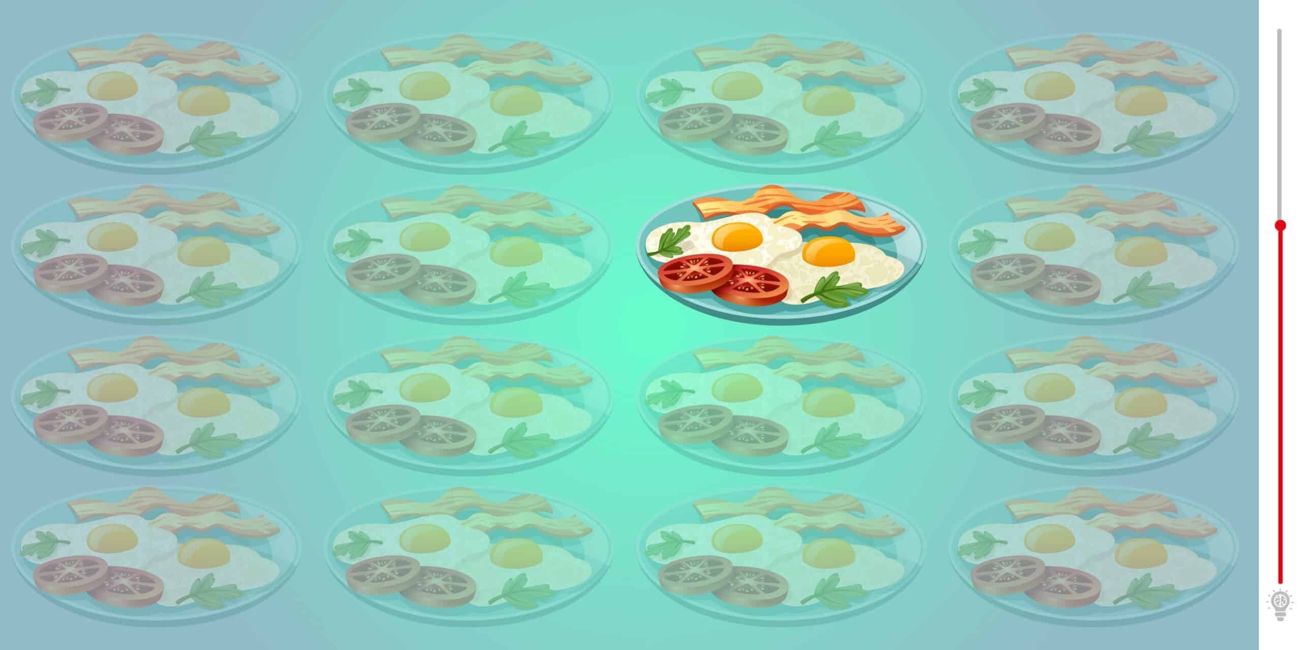На зображенні ви побачите багато однакових страв — апетитні яйця та хрумкий бекон, які повторюються знову і знову. Але будьте уважні: серед них заховався один зайвий елемент.