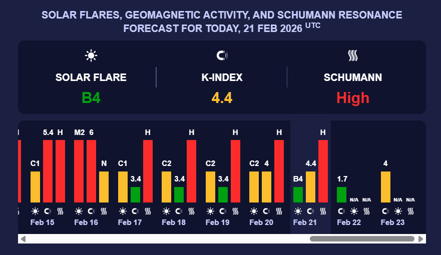 У неділю, 22 лютого, утримаються спокійні геомагнітні умови. Магнітна буря матиме К-індексом 1,7.
