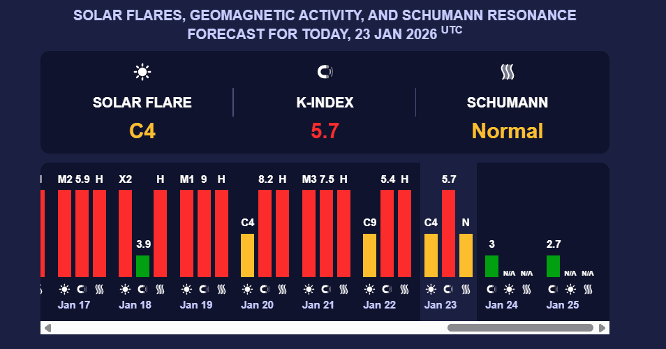 У п’ятницю, 23 січня, магнітна буря підвищиться до червоного рівня. Очікується К-індекс 5.7.