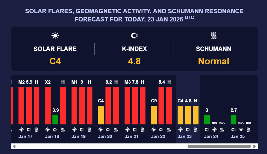 Сьогодні, 24 січня, активність Сонця послабиться і магнітна буря ослабне. Очікується К-індекс 3 (зелений рівень).