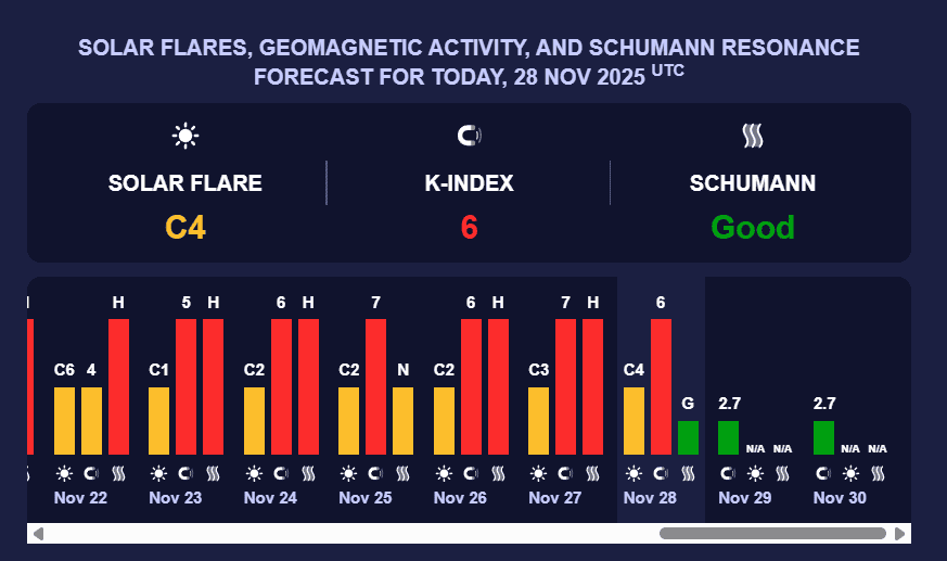 У п’ятницю, 28 листопада, очікується потужна магнітна буря - червоного рівня - К-індекс 6.