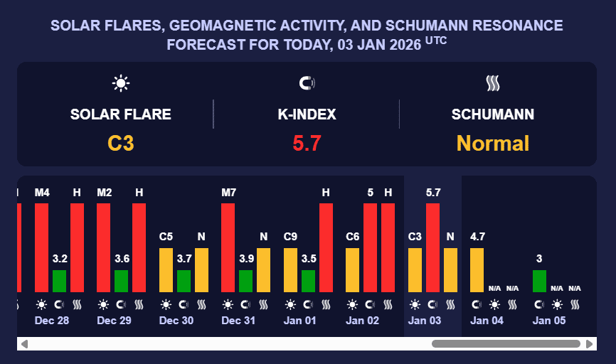 У неділю, 4 січня, активність Сонця трішки послабиться. Очікується магнітна буря з К-індексом 4,7 (жовтий рівень).