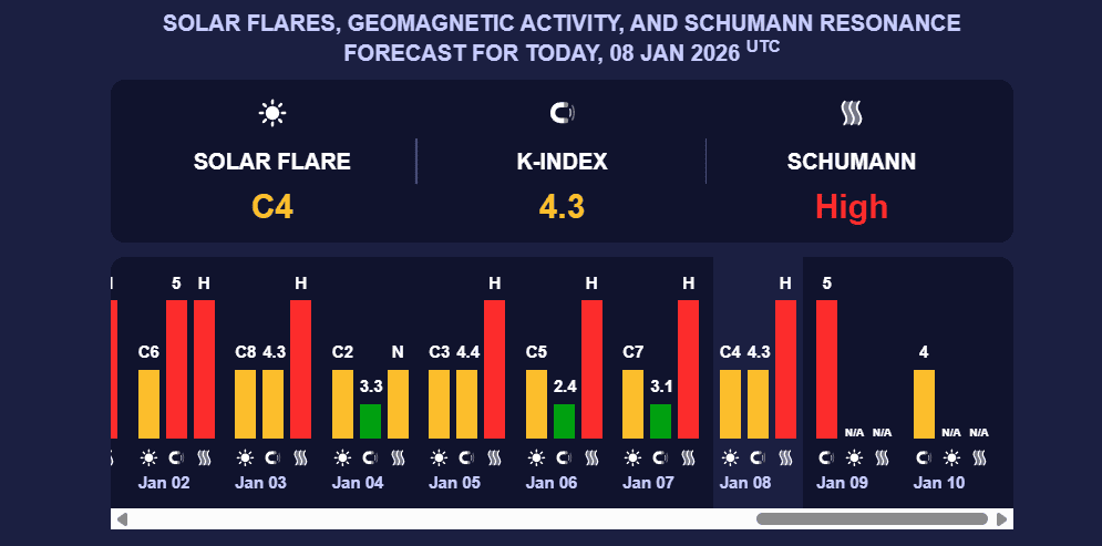 Сьогодні, 9 січня, магнітна буря посилилася і досягла червоного рівня. Очікується К-індекс 5.
