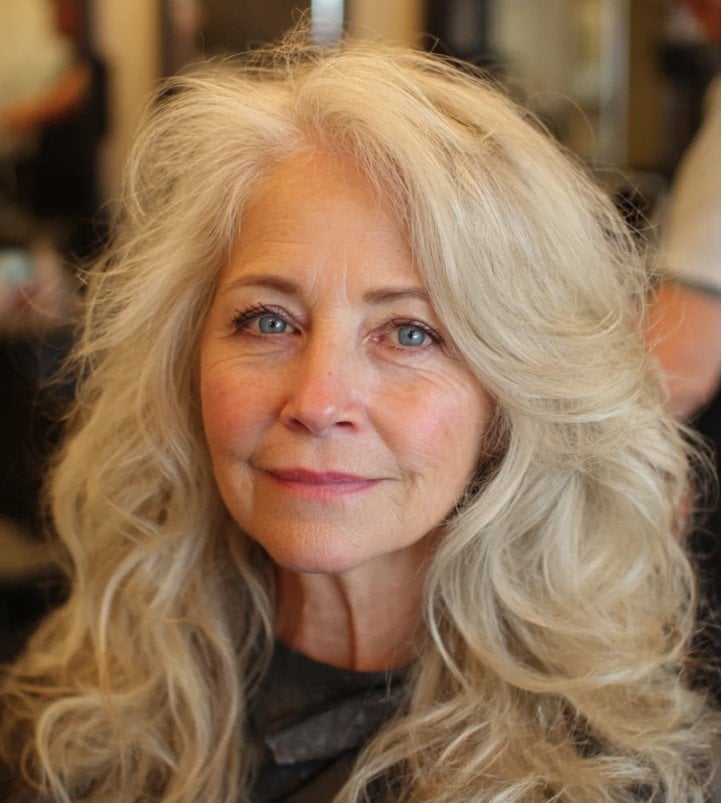 Спеціальна техніка нашарування дозволяє природним хвилям зберігати правильну форму та об’єм, запобігаючи перетворенню зачіски на громіздкий трикутник. Ніжний вершковий блонд додає обличчю свіжості та спокою, створюючи делікатний образ без кричущих акцентів. Таке поєднання текстури та кольору забезпечує м’який, жіночний вигляд і легкість у щоденному догляді.