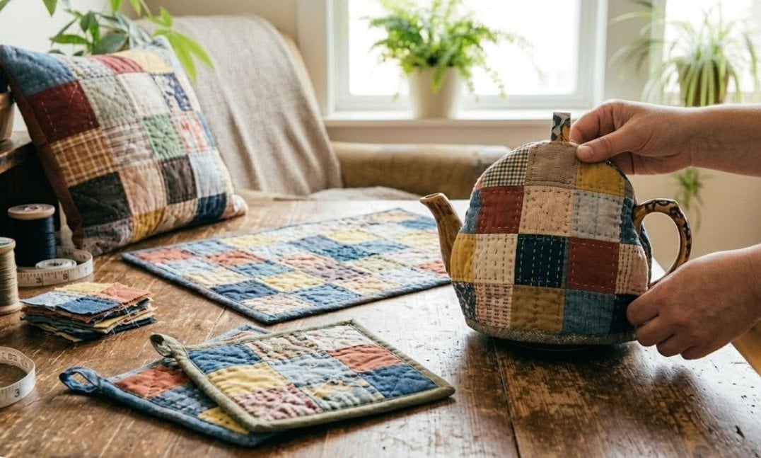 Якщо ж ви готові до кропіткої роботи, можна спробувати техніку печворку, з’єднуючи квадрати тканини у цілісні полотна. Це не вимагає професійних навичок, але дозволяє створити авторські прихватки, декоративні подушки або затишну грілку на чайник, що наповнюють кухню особливою атмосферою.