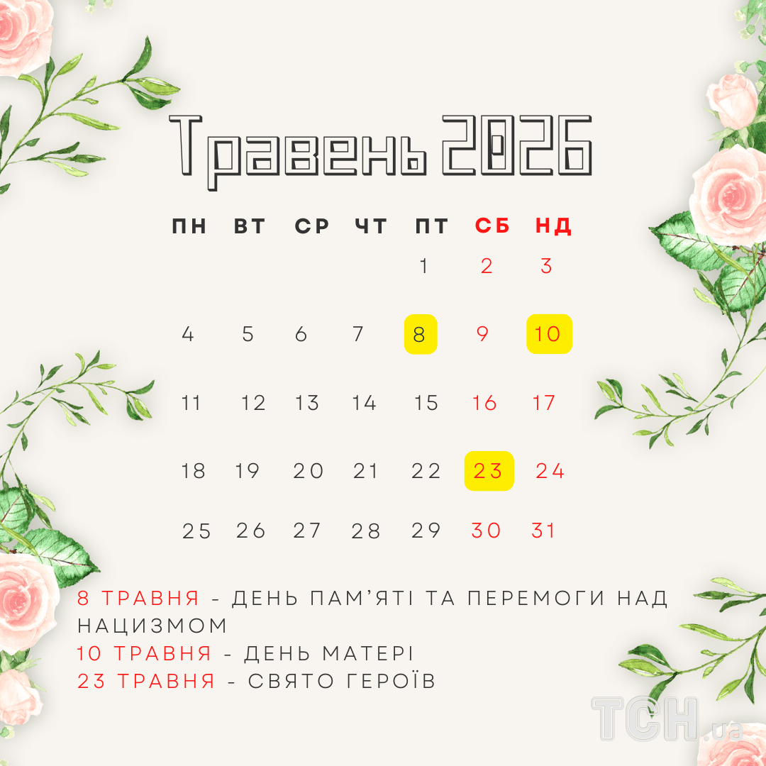 Календар свят у травні 2026 року / © ТСН