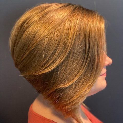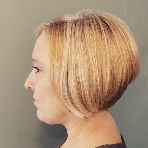 Боб із подовженням дозволяє виглядати сучасно, навіть якщо волосся тонке або з сивиною. Стрижка додає об’єму на потилиці, зберігаючи лаконічність у загальному вигляді. Ідеально підходить для овального, круглого та серцеподібного обличчя. Вона виглядає однаково добре на прямому та хвилястому волоссі, не потребуючи складного укладання.