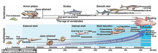 Ці істоти еволюціонували, обмінявши твердий панцир на м’яке тіло. На думку експертів, саме це дозволило їм стати надзвичайно рухливими, отримати гострий зір та високий інтелект. Навіть без зовнішнього захисту вони стали найбільшими безхребетними своєї епохи й домінували в океані нарівні з великими акулами.
