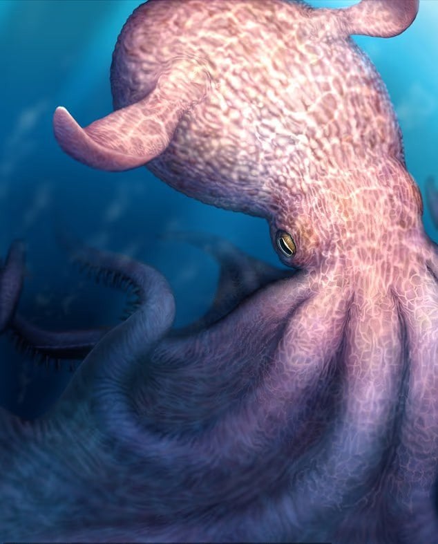 У стародавніх океанах пізнього крейдового періоду, від 72 до 100 мільйонів років тому, панували колосальні восьминоги завдовжки до 19 метрів. Нове дослідження доводить, що ці гігантські безхребетні не лише конкурували з тогочасними морськими рептиліями, як-от мозазаврами, а й могли на них полювати.