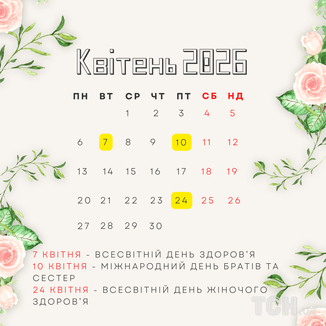 Календар свят у квітні 2026 року / © ТСН
