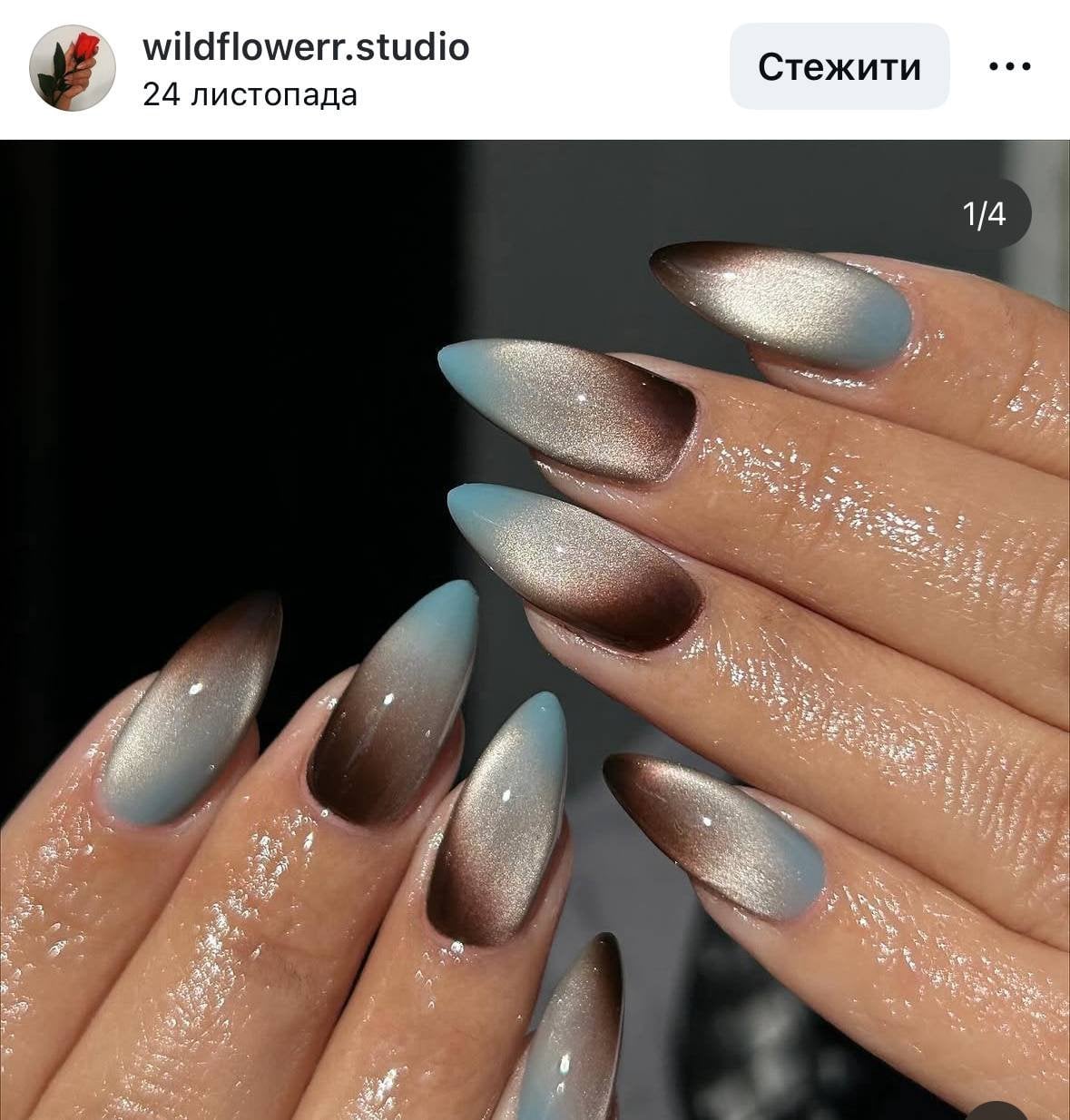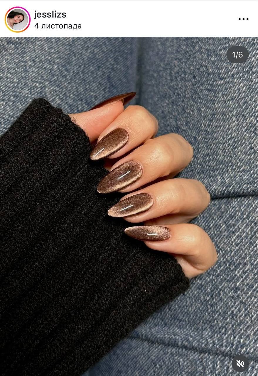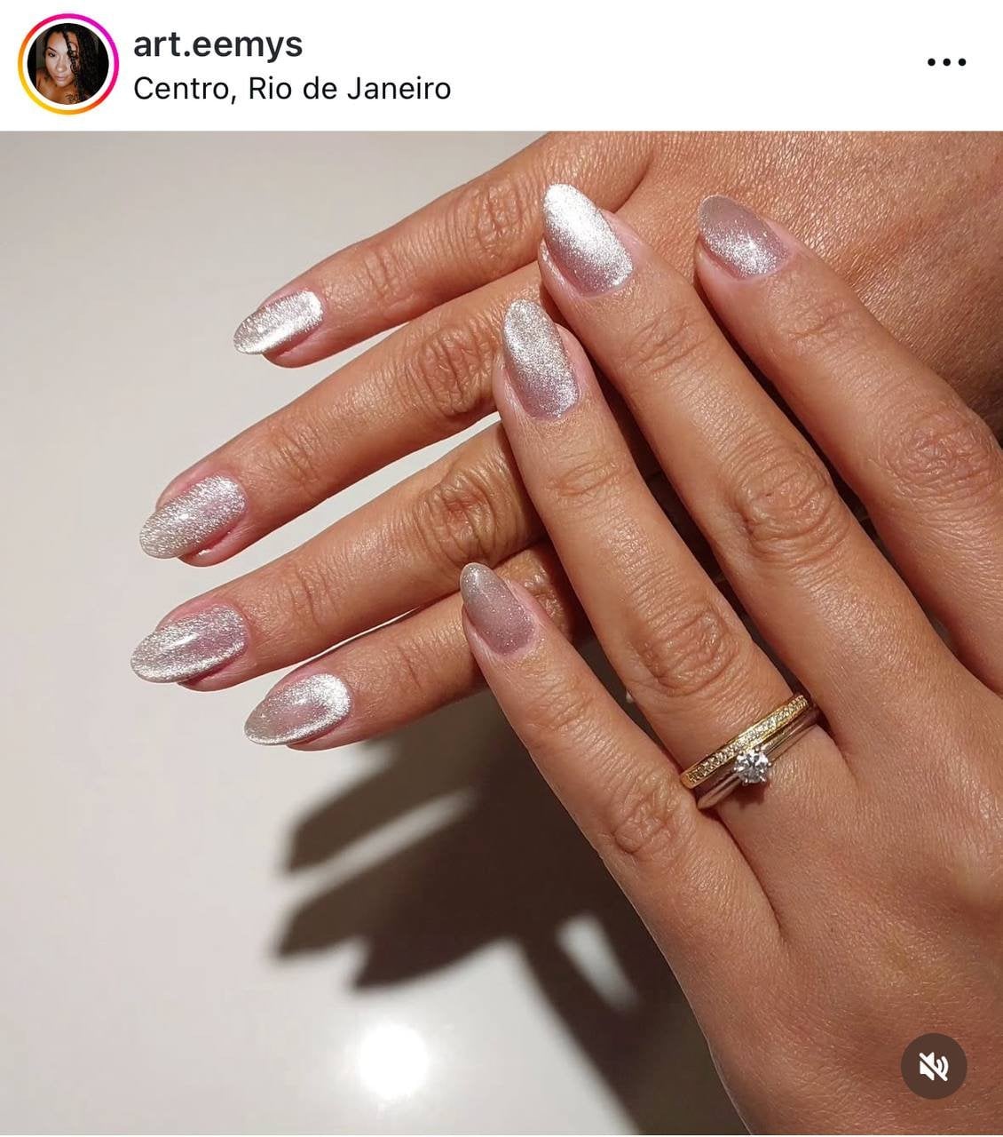 Привабливість оксамитових нігтів очевидна сама собою — «котяче око» і м’яке сяйво мають чарівний вигляд. Цей манікюр — ідеальний зимовий варіант, а з наближенням свят він набирає популярності. Як й інші класичні дизайни, його можна носити мільйоном способів. Він поєднує блискітки та сяйво в стилі Cool Girl.