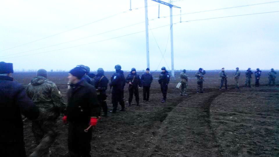 "Нацгвардія і батальйон "Херсон" (близько 100 озброєних бійців) на чолі з Іллею Ківою оточили учасників блокади Криму, які охороняють пошкоджені електроопори на Чаплинці. Силовики хочуть відтіснити учасників блокади від ліній електропередач. За словами очевидців, вже кілька кримських татар постраждали. Силовики не стріляють, але б'ють прикладами автомата, у тому числі і жінок. Протистояння триває, на місце зіткнення продовжують прибувати кримські татари, які живуть у Херсонській області", – написав у Facebook Шевкет Наматуллаєв.