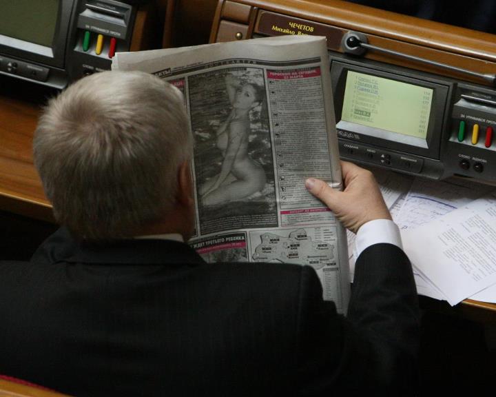 Нардеп від ПР Михайло Чечетов проводить час у Раді з користю - читає газети і розглядає оголених жінок.
