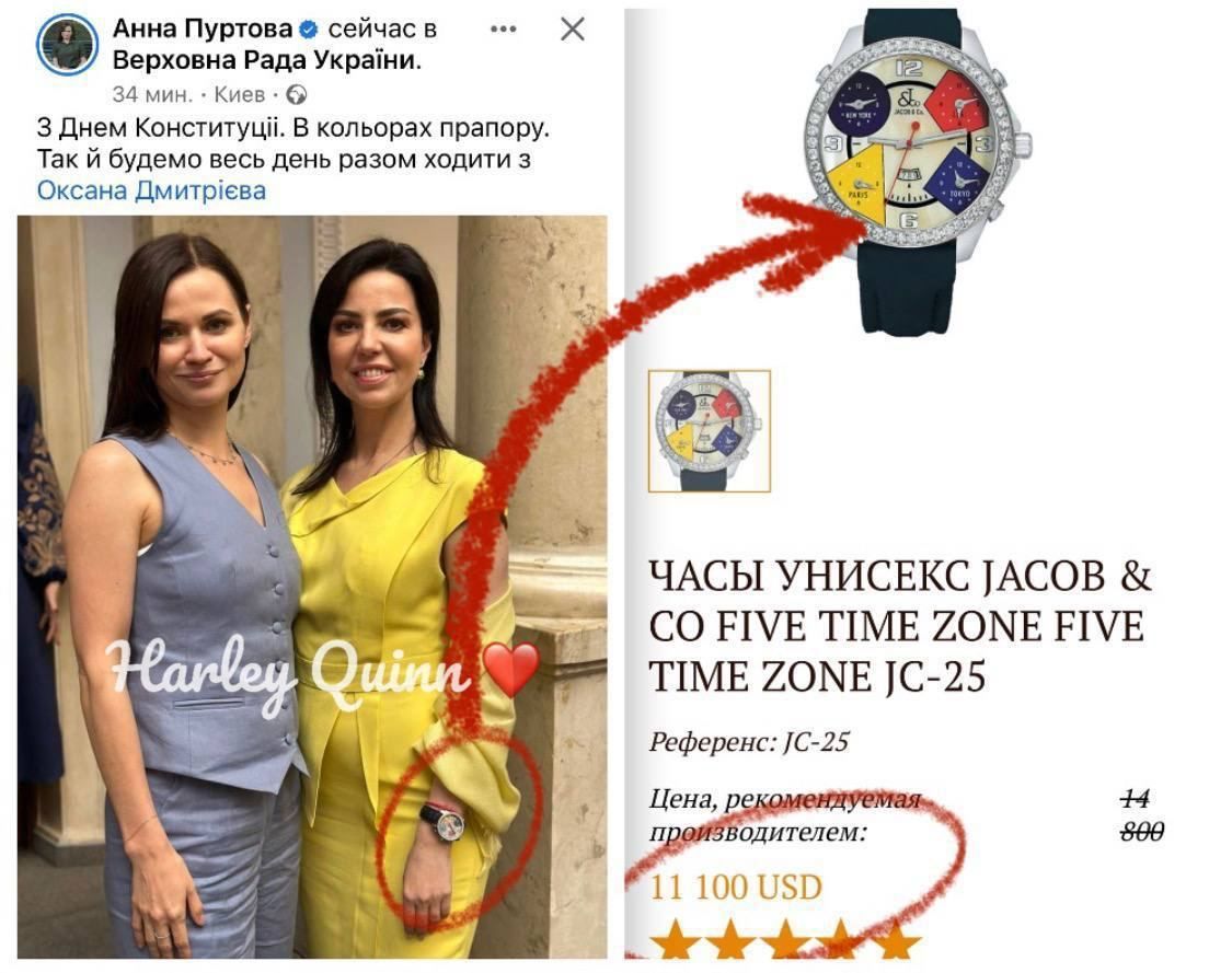 Депутатка одягла коштовний годинник відомого бренду Jacob&Co Five Time Zone і разом із соратницею позували у сукнях кольорів українського прапора.