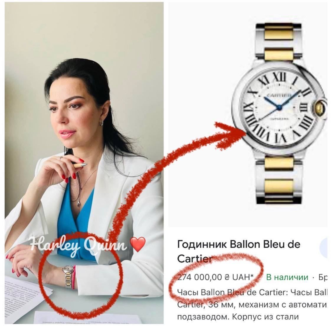У пабліку виклали ще одне фото народної обраниці з годинником від не менш дорогого бренду Cartier лінійки Ballon Bleu. Вартість такого аксесуара становить 274 тис. грн. Як і попередній годинник, корпус аксесуара зроблений із нержавіючої сталі і золота, а ще на ньому є діаманти.