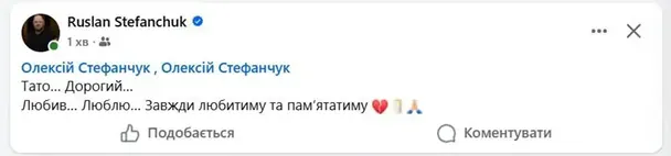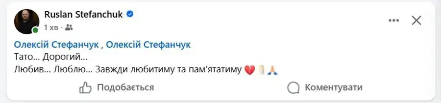 «Тато… Дорогий… Любив… Люблю… Завжди любитиму та пам’ятатиму», — написав спікер на своїй сторінці у Facebook.