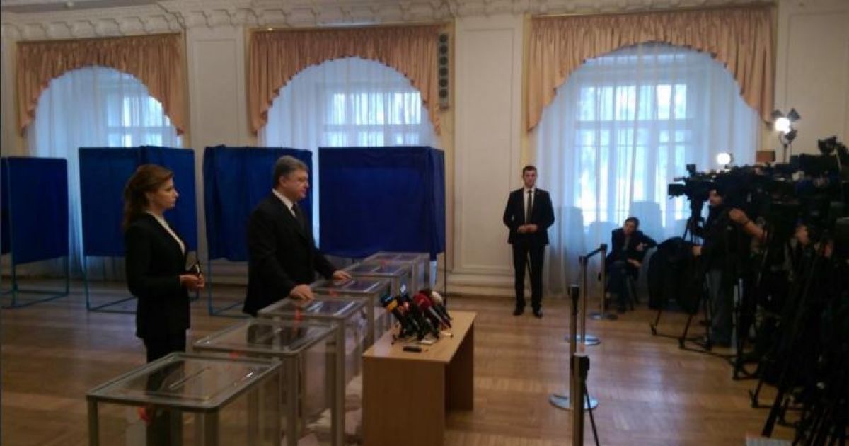 Відповідну світлину із волевиявленням президента та його дружини Марини Порошенко опублікував на своїй сторінці у Twitter прес-секретар Порошенка Святослав Цеголко.