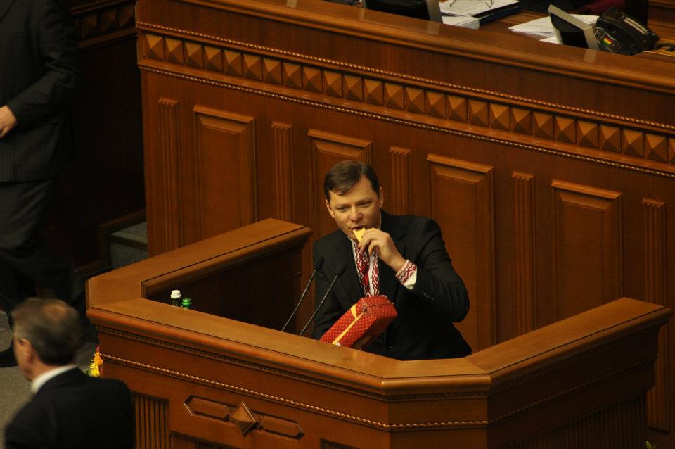 Народний депутат Олег Ляшко прийшов на ефір одного з українських телеканалів зі шматком українського сиру та пропонував його всім охочим.