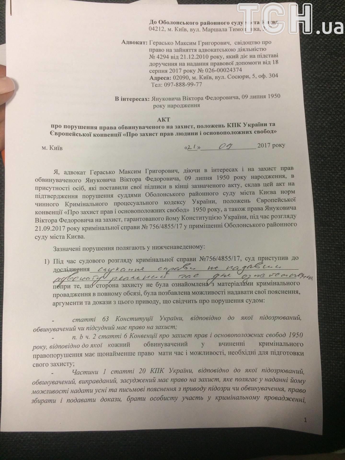 На початку засідання Герасько просив перенести розгляд справи на три місяці, оскільки вважає цей термін необхідним для ознайомлення з матеріалами. ТСН отримала це клопотання: