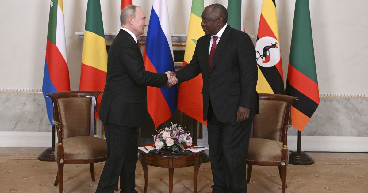 Президент ПАР Сиріл Рамафоса та російський диктатор Володимир Путін / © Associated Press
