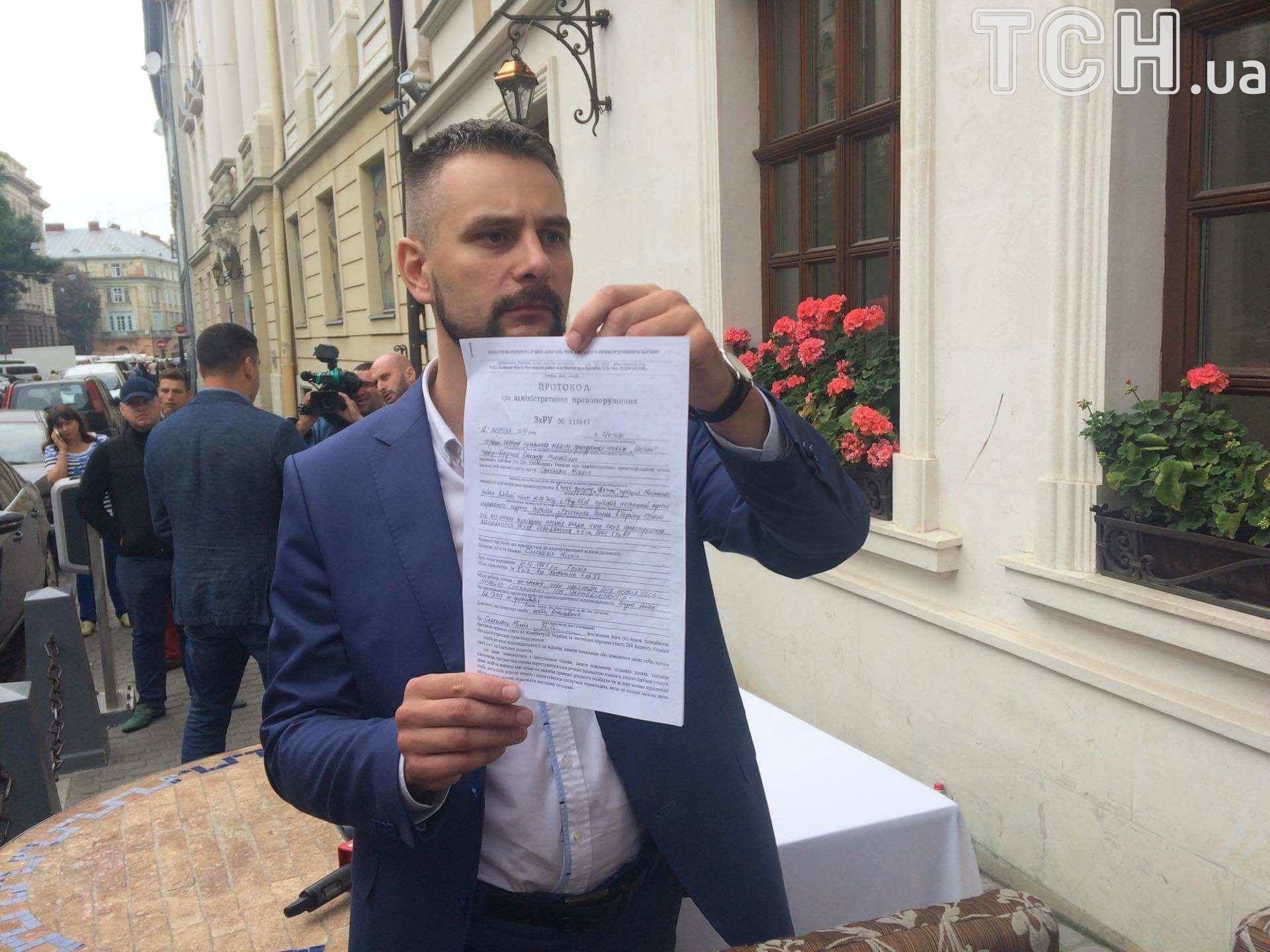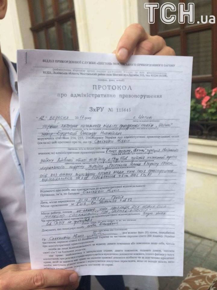 У Львові Міхеілу Саакашвілі вручили протокол про незаконний перетин кордону. Екс-очільник Одещини у присутності своїх адвокатів спілкувався з представниками Держприкордонслужби просто під стінами будівлі готелю, за столиком, який винесли з приміщення.