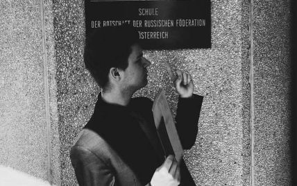 Окрім того, на сторінці хлопця є фотографія біля школи посольства Росії в Австрії.