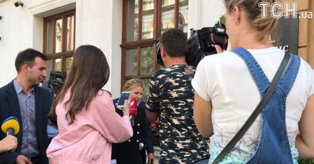 Лідер "Батьківщини" Юлія Тимошенко вийшла до журналістів під готелем "Леополіс" у Львові, де наразі нібито перебуває екс-глава Одеської ОДА Міхеіл Саакашвілі.