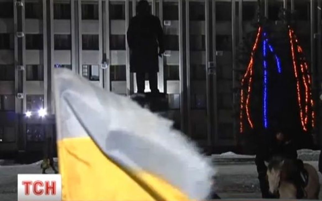 Натовп з українськими стягами в руках вимагав терміново демонтувати пам'ятник вождеві. Дехто навіть закинув трос на монумент попри те, що під ним стояв дідусь. Демонтувати пам'ятник Леніну громада все ж вирішила цивілізовано. Як і коли - незабаром домовляться на місцевій раді.