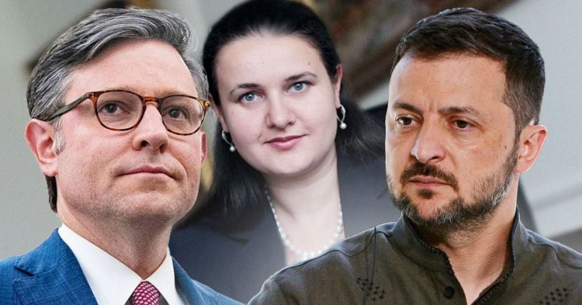 Майк Джонсон, Оксана Маркарова та Володимир Зеленський / © ТСН.ua