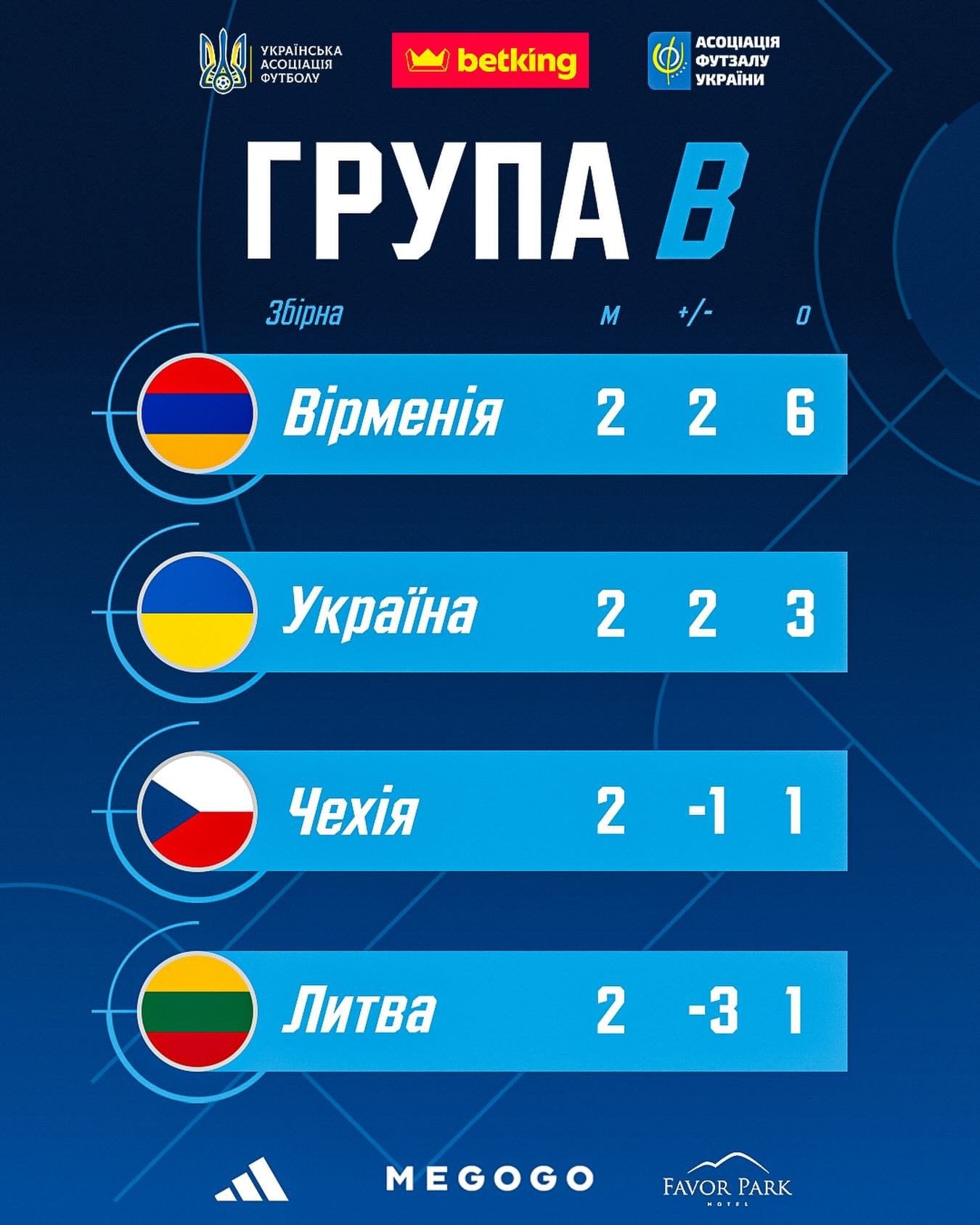 Турнірна таблиця групи збірної України на Євро-2026 з футзалу / © Асоціація футзалу України