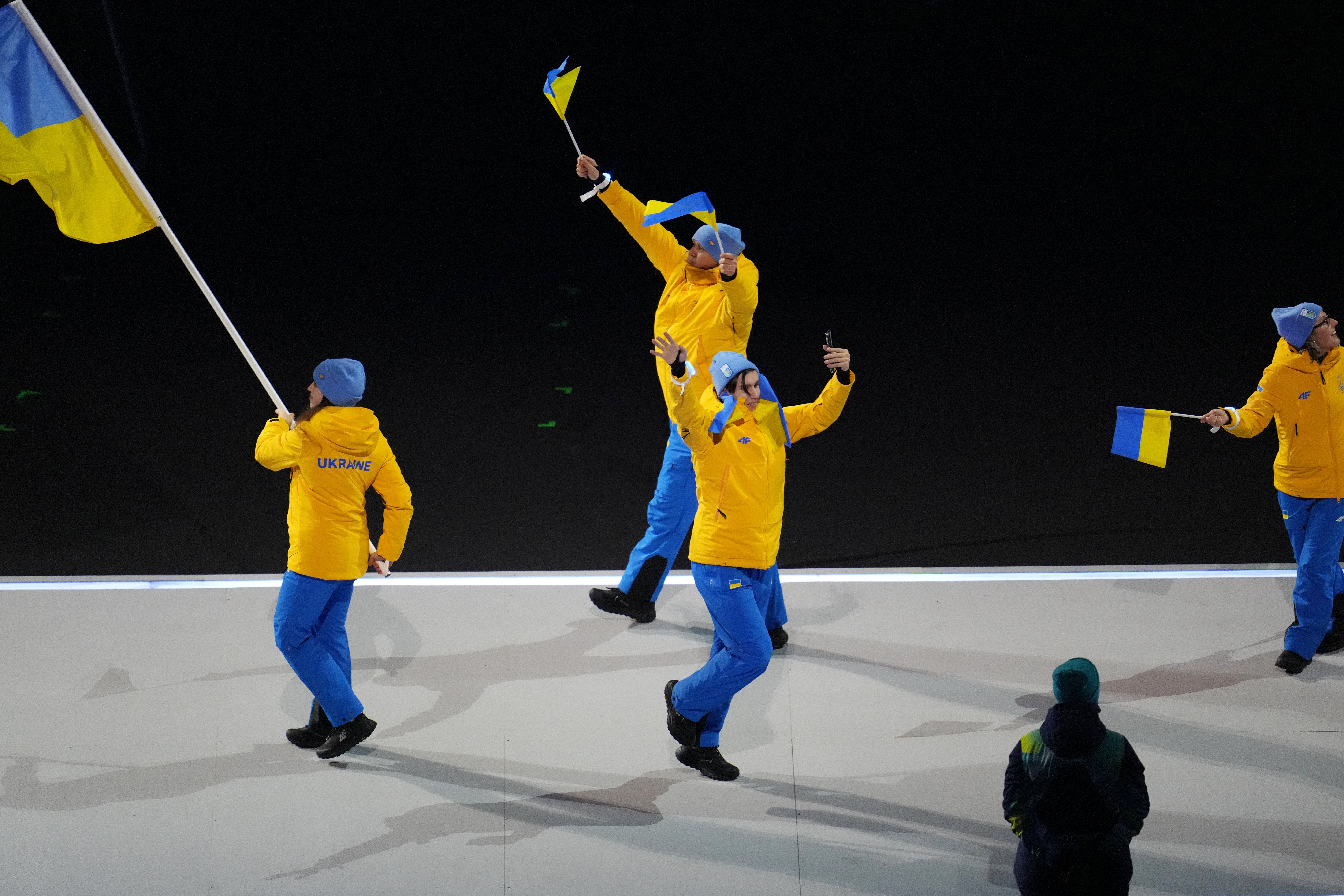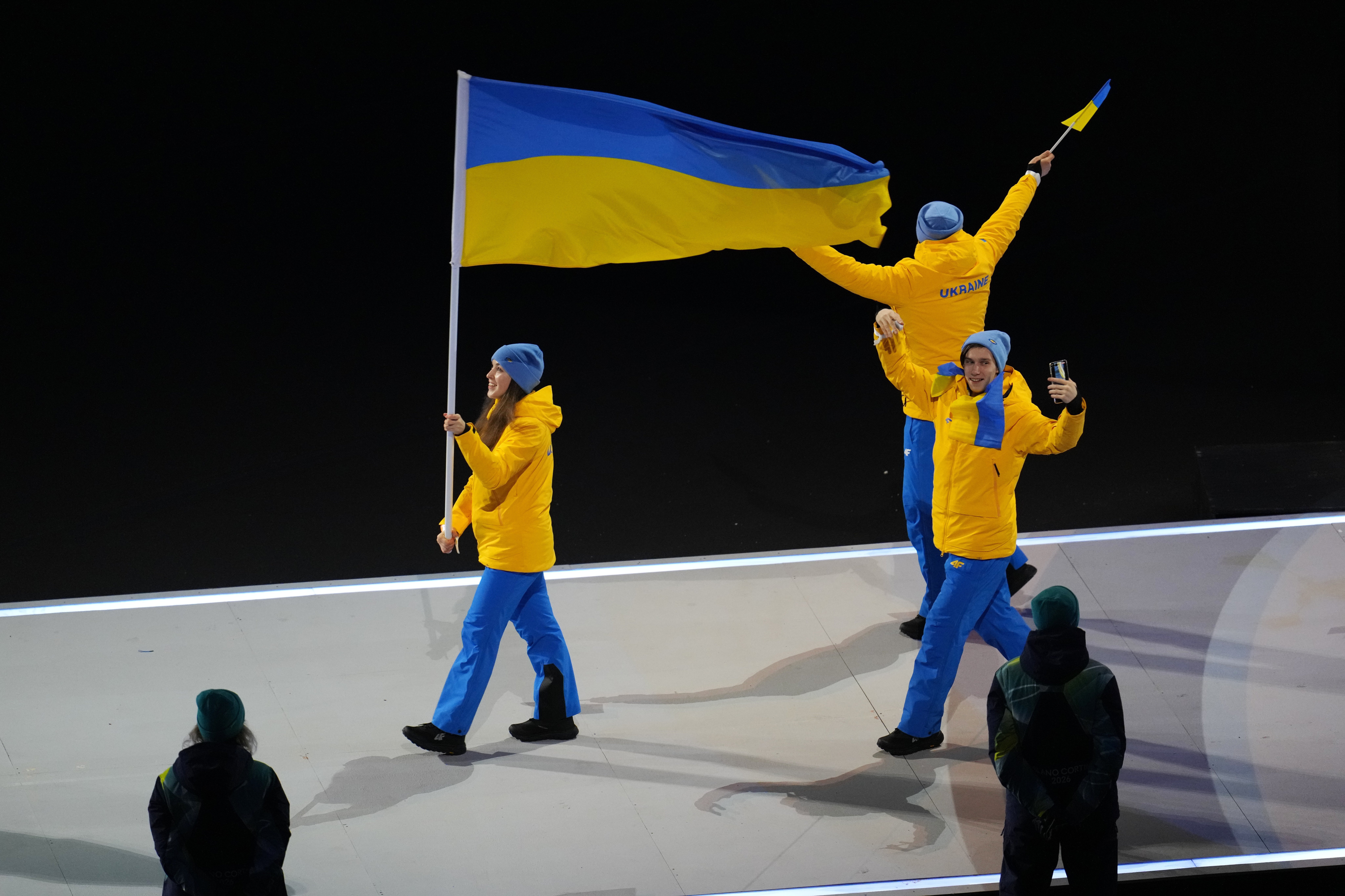 У традиційному параді країн взяла участь і збірна України. Синьо-жовтий прапор у Мілані пронесла Єлизавета Сидьорко (шорт-трек), а в Кортіна-д'Ампеццо — скелетоніст Владислав Гераскевич.