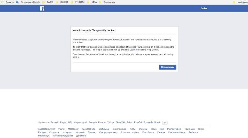 Українським користувачам у Facebook, які поставили низькі оцінки сторінці ФІФА, прийшли повідомлення про необхідність пройти перевірку.