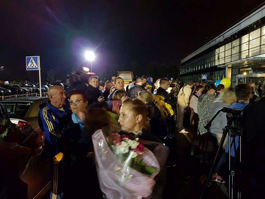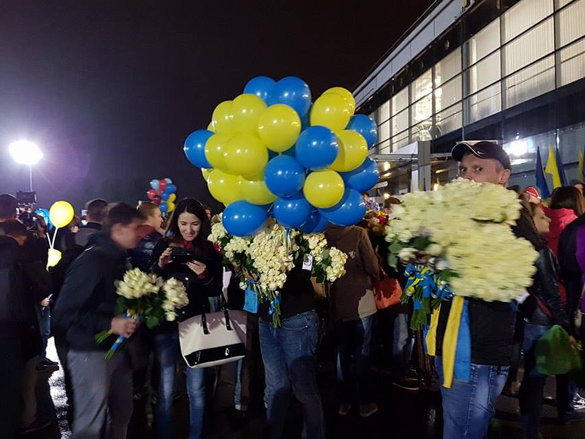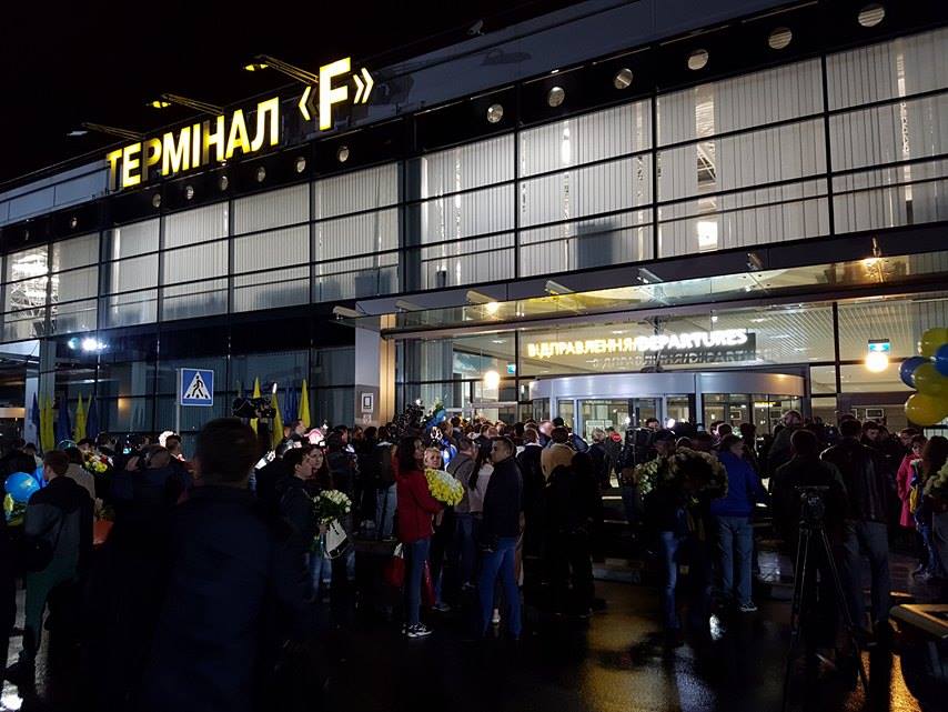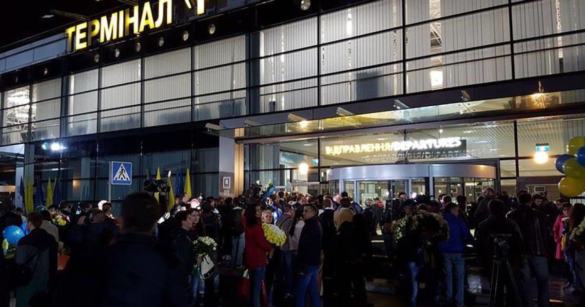 Спортсмени прилетять до Києва о 1.25. Аеропорт "Бориспіль" надав нашим героям увесь термінал "F" , а площу перед ним визначив місцем зустрічі чемпіонів з уболівальниками.