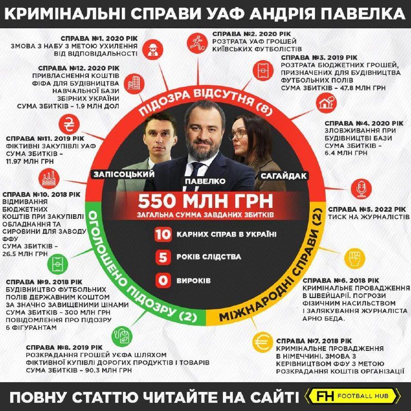 Втім, наша редакція погроз від корупційних ділків не боїться. Ми зібрали докупи всі карні справи щодо оборудок УАФ. По суті, перед вами – справжній путівник по футбольній корупції в Україні в часи, коли УАФ (до цього ФФУ) керує Андрій Павелко та його команда.
