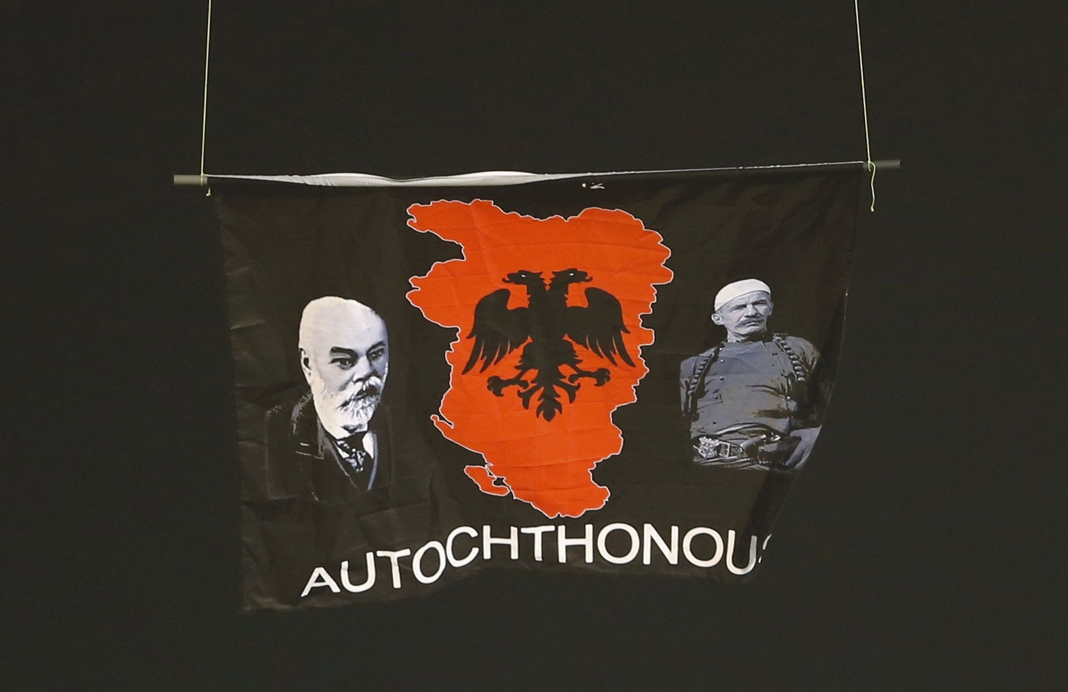 Гра, що відбулася у Белграді у вівторок, 14 жовтня, була зупинена на 41-й хвилині. Над стадіоном закружляв безпілотник, до якого був прикріплений банер так званої "Великої Албанії" .