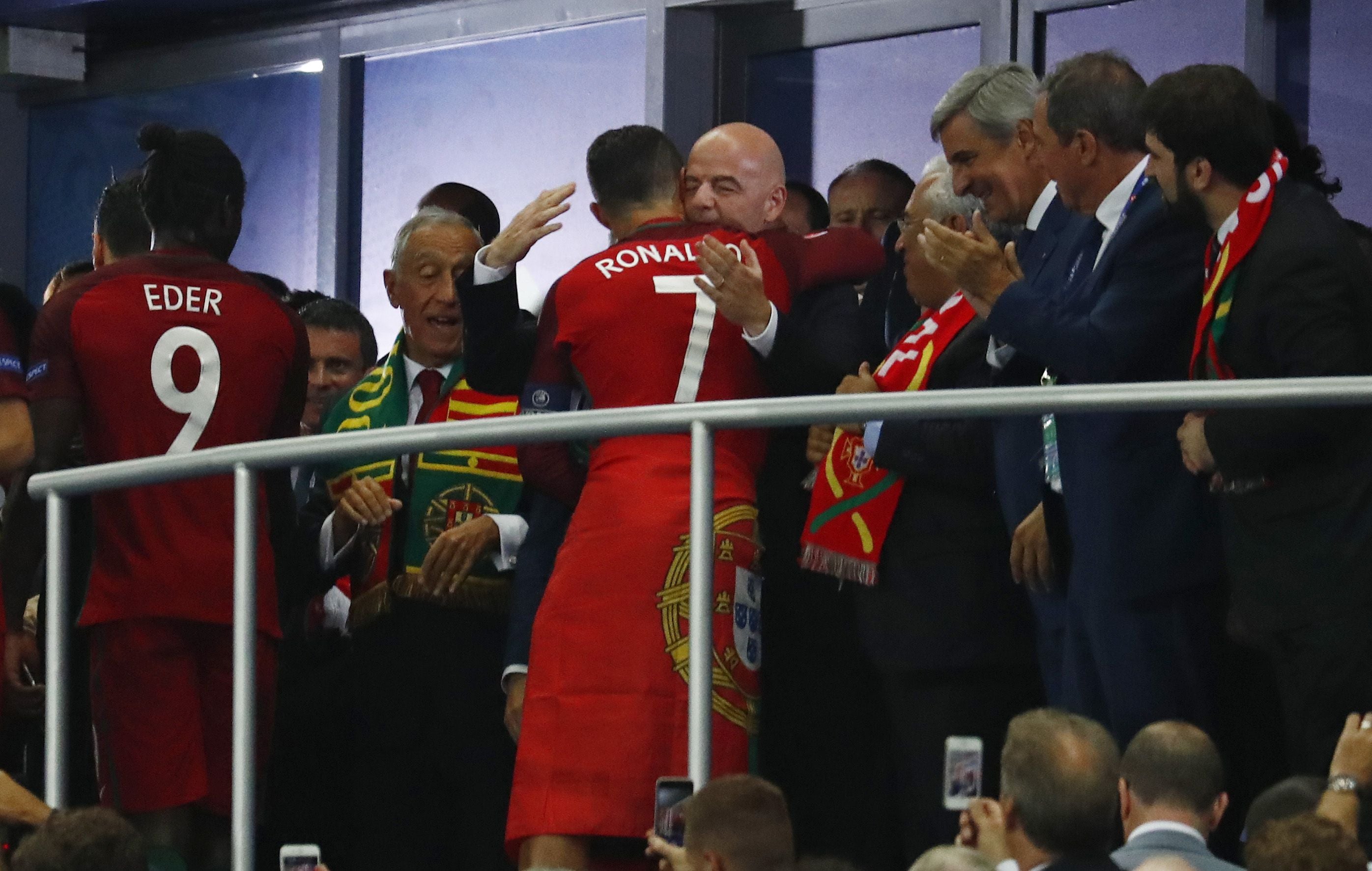 10 липня. Сен Дені, "Стад-де-Франс". нагородження збірної Португалії, яка стала чемпіоном Європи, перемігши команду Франції у додатковий час - 1:0. / © Reuters