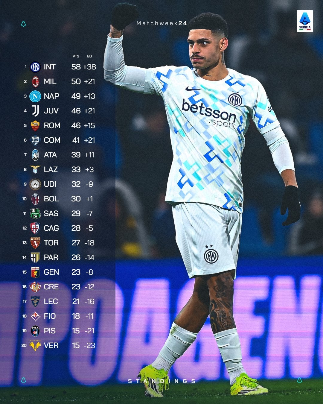 Таблиця Серії А після 24-го туру / x.com/SerieA_EN
