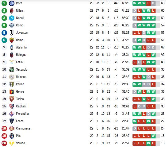 Дивіться календар і результати усіх поєдинків 30-го туру чемпіонату Італії з футболу в елітному дивізіоні, а також турнірну таблицю.