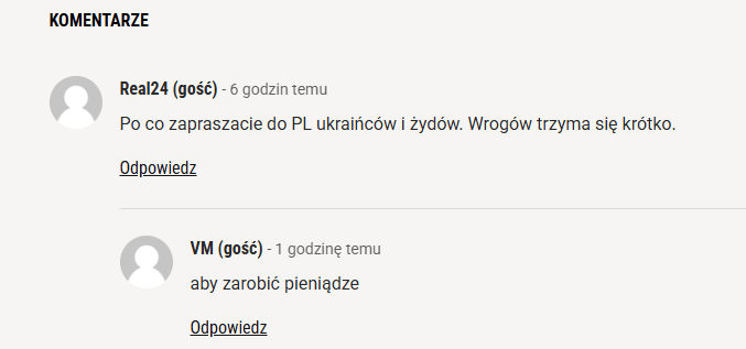«Чому ви запрошуєте українців та євреїв до Польщі? Ворогів тримають на короткому повідку», — пише один з коментаторів (скриншот польською мовою нижче).