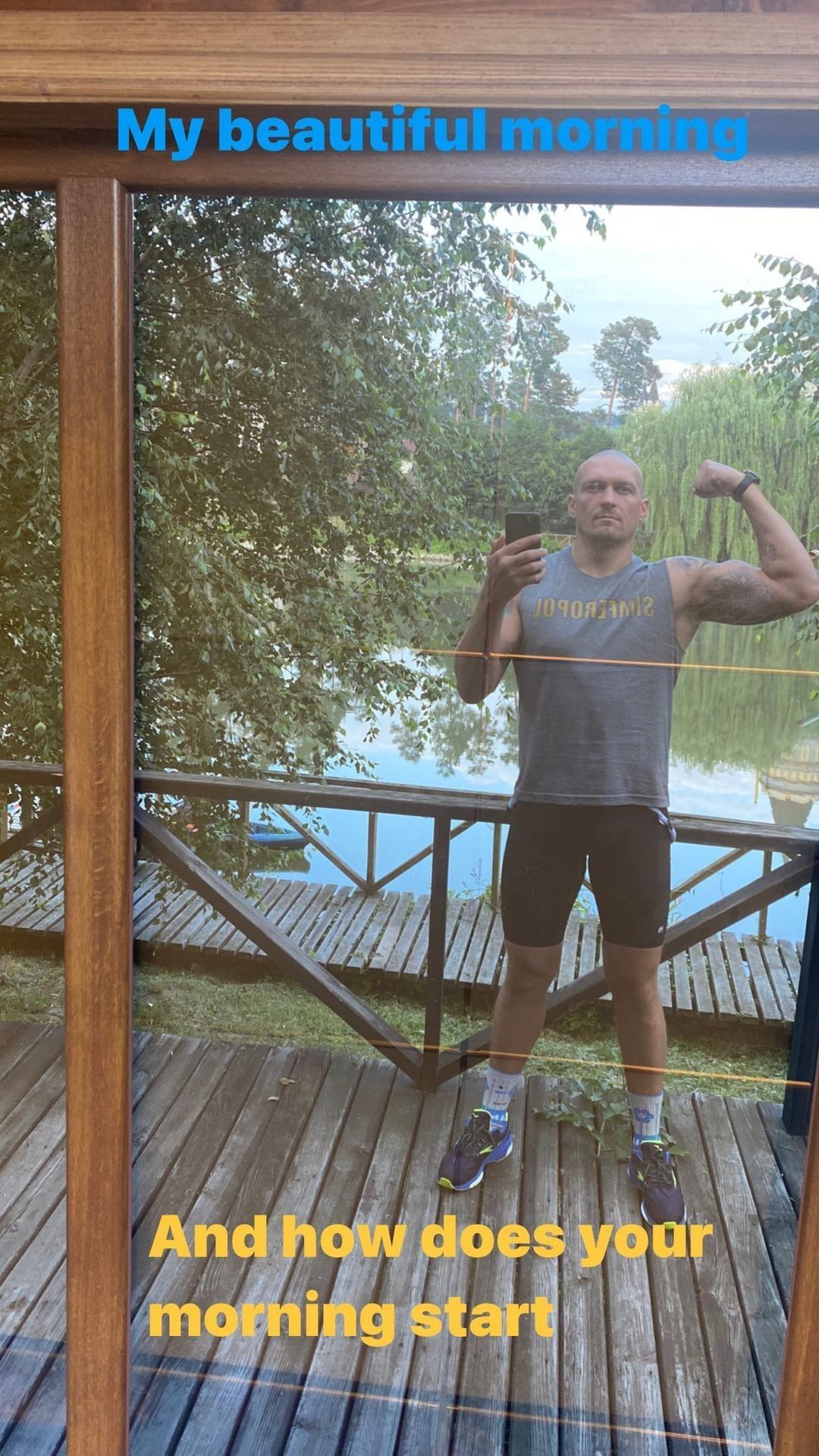 "Мій прекрасний ранок. А як починається ваш ранок?" - підписав знімок боксер, де показує в камеру величезний біцепс.