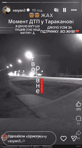 "Я дякую Богу, що врятував наші життя! Дякую всім за підтримку, всі живі",