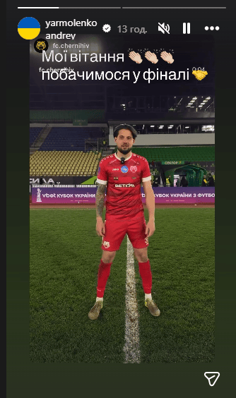 Андрій Ярмоленко привітав "Чернігів" з виходом до фіналу Кубка України / instagram.com/yarmolenkoandrey