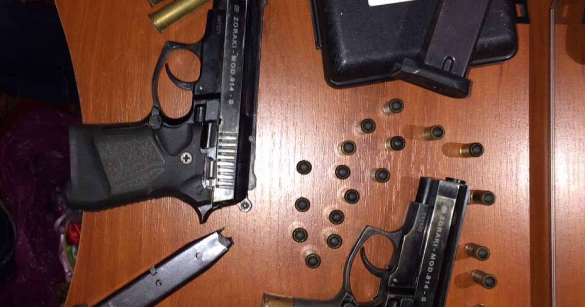Правоохранители сообщили, что во время обысков у задержанных было изъято два гранатомета РПГ-26, 18 пистолетов различных модификаций, три ружья, 12 гранат с запалами, и почти тысячу патронов различного калибра, 600 граммов тротила в шашках, два глушители, а также 80 тысяч гривен, 6200 долларов США и одну тысячу евро наличности.