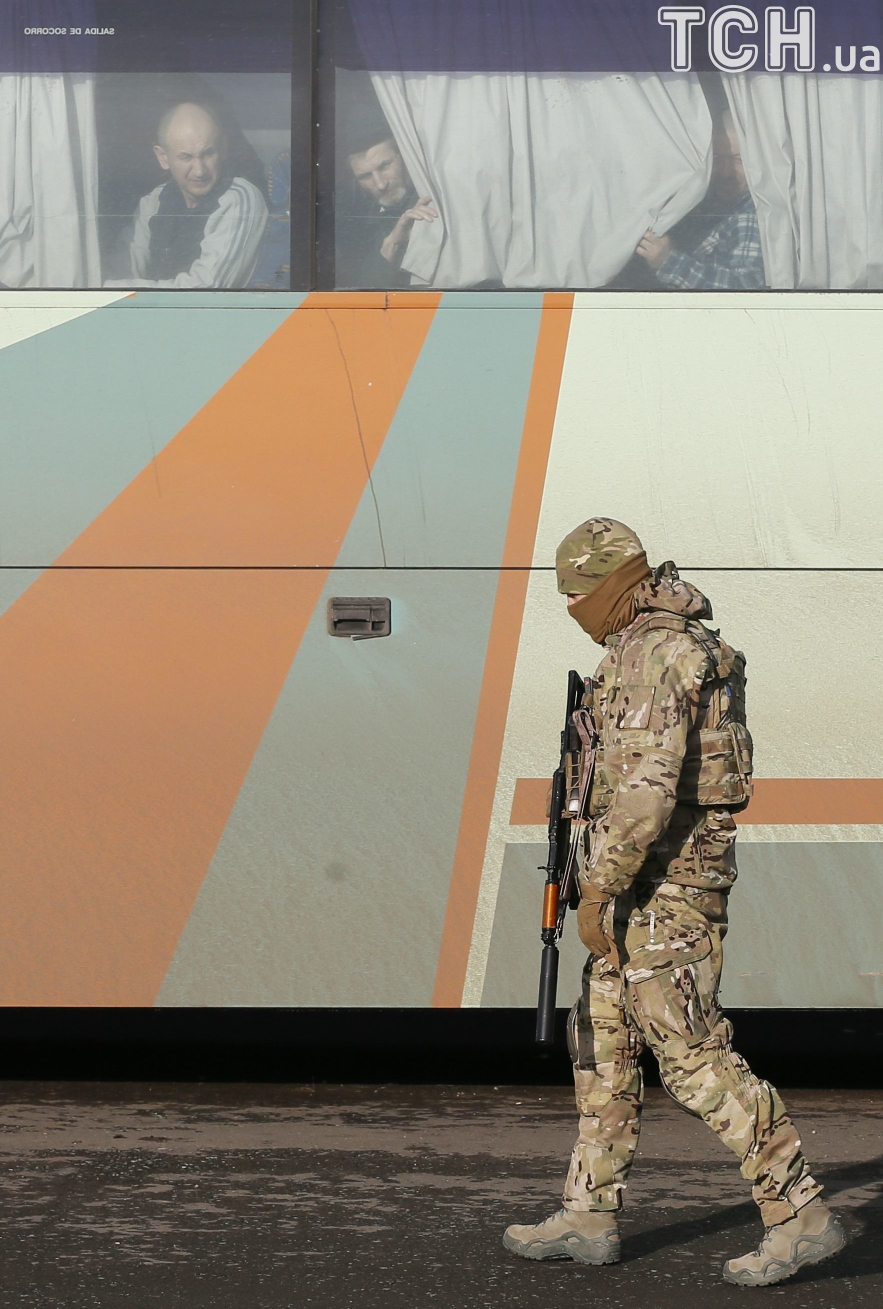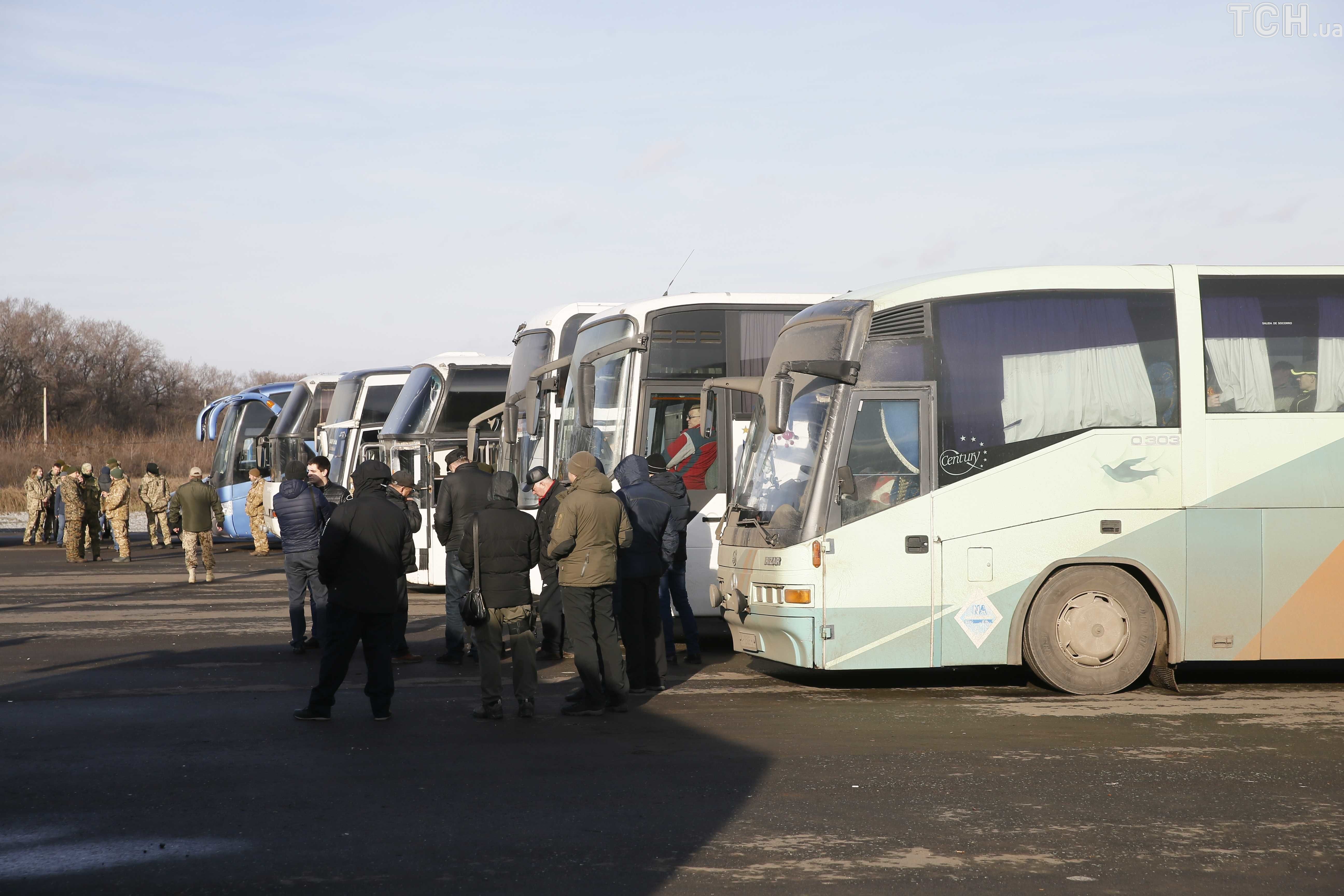 Как сообщает корреспондент ТСН Александр Загородный, на пункт назначения возле КПП "Майорск" уже прибыло около десяти автобусов с людьми, которых планируют обменять на украинских заложников.