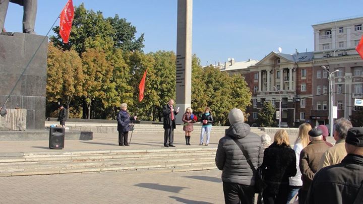 На площади Ленина коммунисты говорили об отдельном "донецком народе", которому 150 лет.