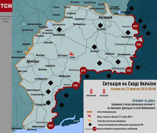 Ситуация в зоне АТО по состоянию на 23 октября / © ТСН.ua