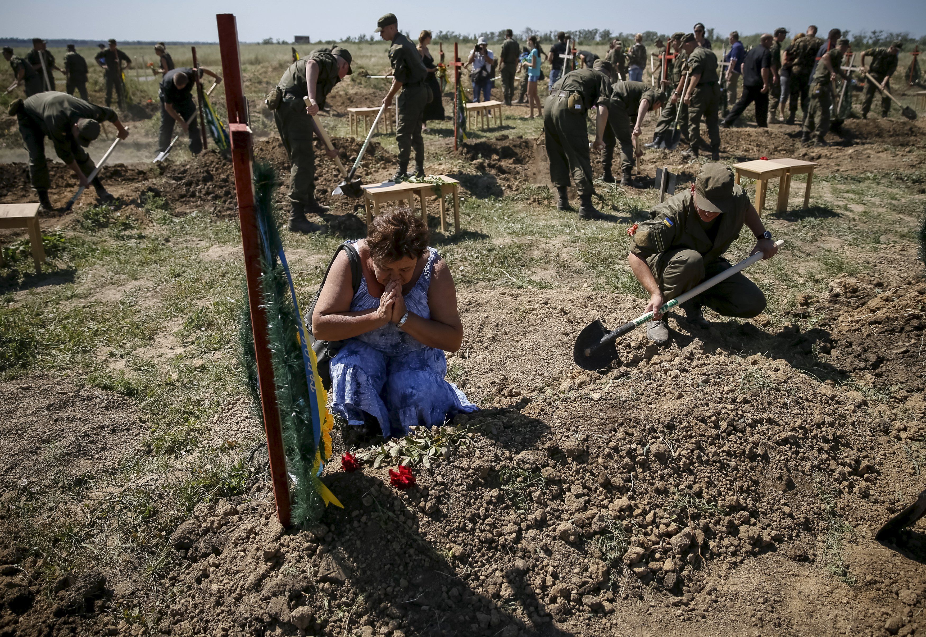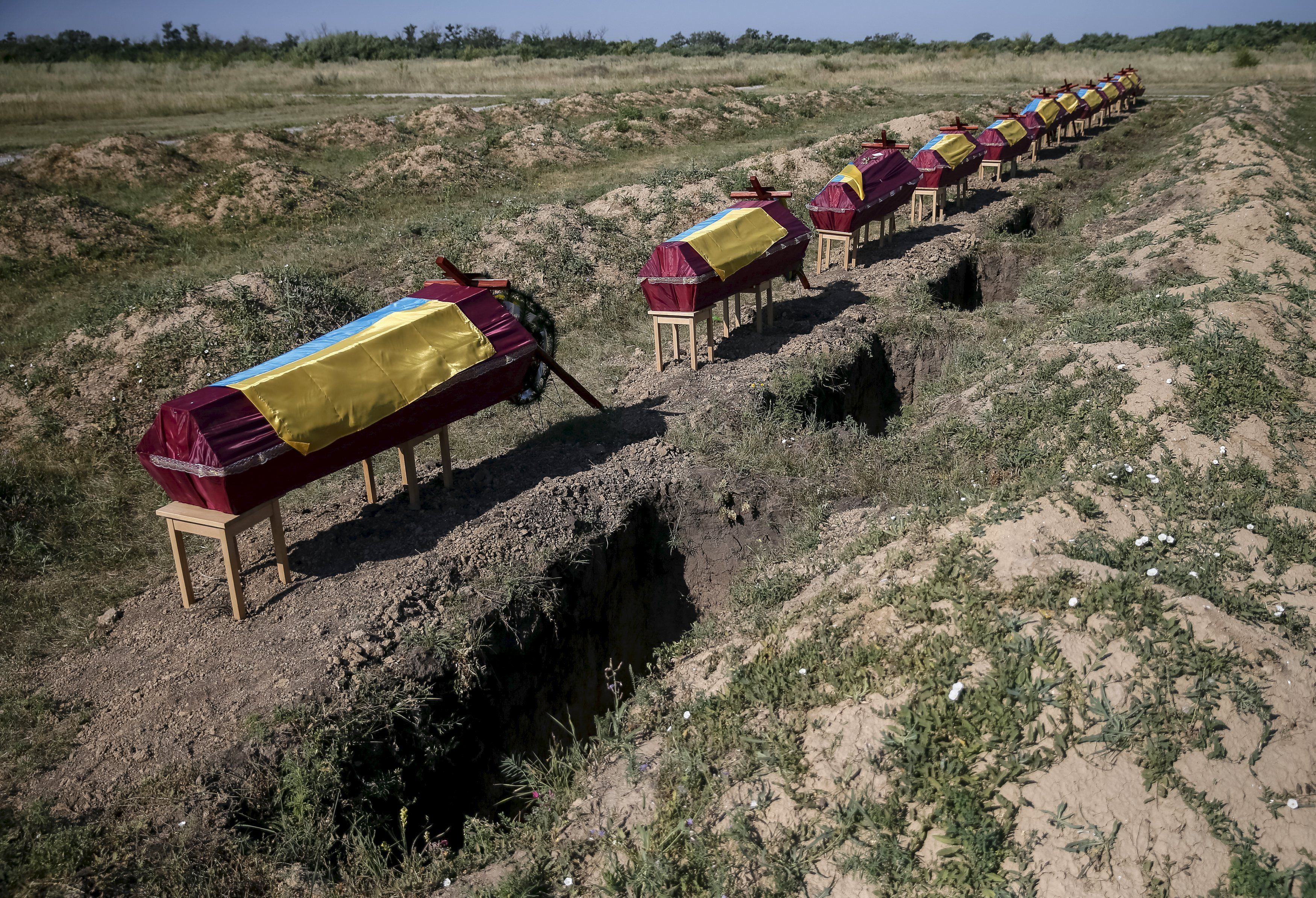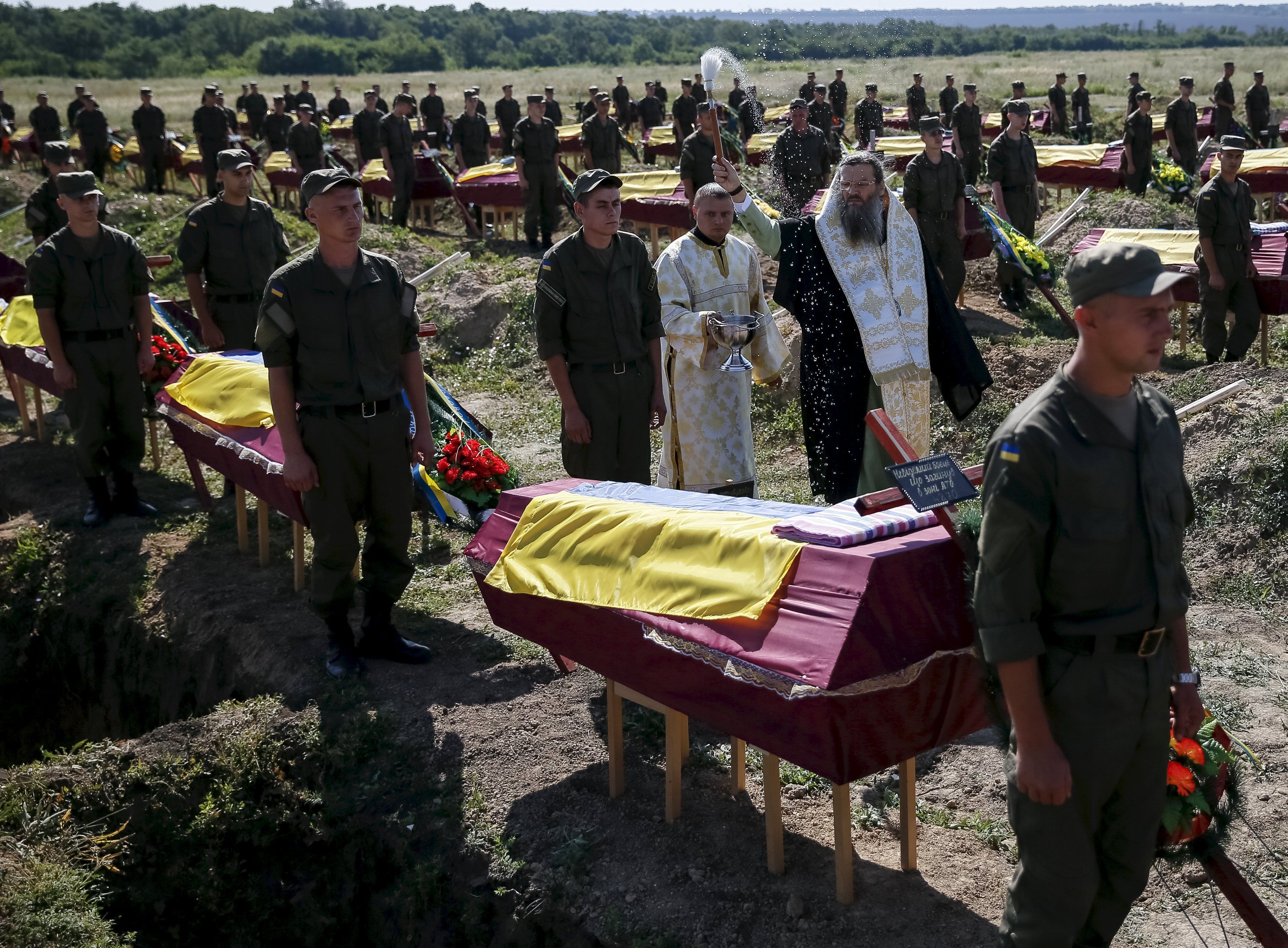 В пятницу, 7 августа, на Кушугумском кладбище под Запорожьем похоронили 57 неопознанных военнослужащих, погибших в ходе антитеррористической операции под Иловайском.